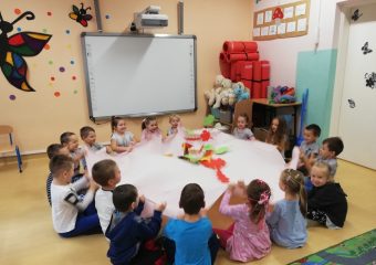 Dzień Drzewa w „Zaczarowanym Ogrodzie” Dzień Drzewa obchodzony jest 10 października. Z tej okazji „motylki” zaprosiły na zabawy do swojej sali „słoneczka”. Było wspólne powitanie, oglądanie zdjęć różnych drzew, taniec i zabawy ruchowe z listkami. „Słoneczka” były bardzo odważne, zaciekawione nowym miejscem i zajęciami, a starsze dzieci uczyły się opiekuńczości i troski wobec młodszych, dumnie prezentowały swoje umiejętności.