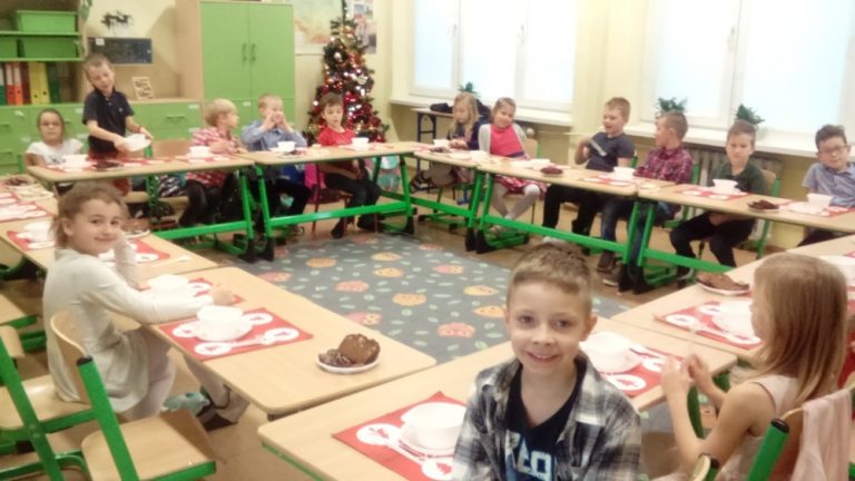 Spotkania wigilijne W piątek 20 grudnia, we wszystkich klasach odbyły się spotkania wigilijne. Dzieci, nauczyciele i pracownicy szkoły składali sobie świąteczne życzenia. W powietrzu unosił się zapach wigilijnych potraw, w salach słychać było śpiew i na korytarz wydobywały się dźwięki pięknych polskich kolęd.