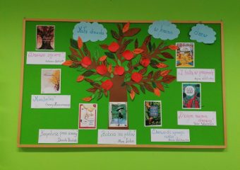 „Babcia na jabłoni” Uczniowie klasy 3a w swojej sali 204 w dniu jabłka przygotowali jabłoń, która stanowi doskonałą ilustrację do jednej z wybranych książek do omówienia we wrześniu. Zaczynamy czytelniczą przygodę z książką pt. „Babcia na jabłoni”, piękną, wzruszającą, niekiedy smutną, innym razem zabawną opowieścią o chłopcu, który pragnął mieć babcię.