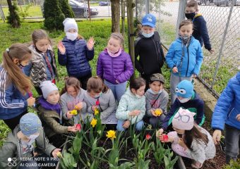 Na grządce klasy 2a Czy pamiętacie, że na grządce klasy 2a najpierw zakwitły przebiśniegi? Kilka dni po nich podziwialiśmy piękne krokusy. Teraz możemy oglądać żonkile i tulipany.