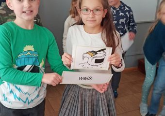 Przygoda z językiem niemieckim klas 3b i 3c Uczniowie klas trzecich mają możliwość uczestniczenia w zajęciach dodatkowych z języka niemieckiego. Naszą przygodę rozpoczęliśmy w październiku. Znamy już dużo wyrazów w tym języku i co ciekawe brzmią one podobnie jak w języku polskim, bo przecież Telefon to telefon, a Hotel to hotel. Jedyna trudność, to że … Czytaj dalej Przygoda z językiem niemieckim klas 3b i 3c