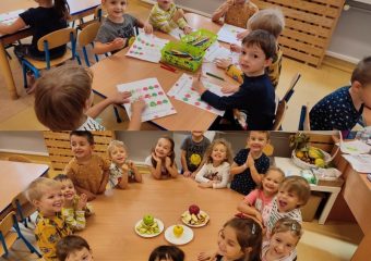 Obchody Dnia Jabłka u “Pszczółek” Jabłko, najpopularniejszy owoc, ma swoje święto 28 września. Obchody Dnia Jabłka “Pszczółki” rozpoczęły od rozmów na temat jego wyglądu, koloru, wielkości, kształtu oraz smaku. Dzieci wszechstronnie poszerzały wiedzę o jabłku, poznawały różne gatunki tego owocu, a także zdobywały wiadomości na temat potraw i przetworów z jabłek. Ponadto przedszkolaki zagrały w … Czytaj dalej Obchody Dnia Jabłka u “Pszczółek”