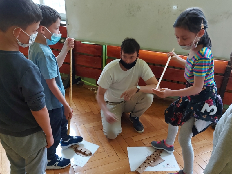 W dniach 17 – 18.05.2021r. w klasach 1 – 3 odbyły się warsztaty archeologiczne. Zajęcia prowadzone przez panią Pawła wprowadziły uczniów do świata archeologii (nauki o przeszłości człowieka) i związanych z nią podstawowymi terminami i zasadami. Podczas zajęć dzieci zobaczyły specjalnie przygotowaną prezentację oraz ekwipunek archeologa, czyli najczęściej używane przy jego pracy narzędzia, a także „znaleziska”, do złudzenia przypominające muzealne eksponaty. Uczniowie zobaczyli i dotknęli różnych „zabytków”, a także wykonali archeologiczne zadania.