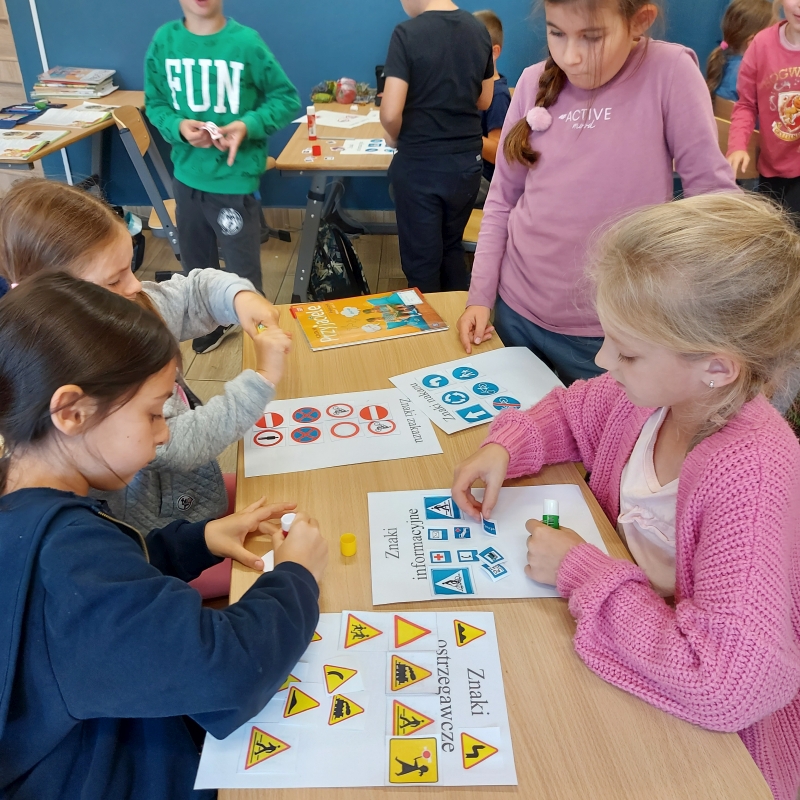 Podczas zajęć uczniowie utrwalali zasady bezpieczeństwa i zachowania się na drodze. Wspólnie przypomnieliśmy zasady przechodzenia przez jezdnię oraz znaki drogowe. Podczas scenek oraz filmu edukacyjnemu dzieci utrwalały numery alarmowe, na które należy zadzwonić w sytuacjach zagrażających bezpieczeństwu i życiu. Teraz już wiemy jak należy zachować bezpiecznie w różnych sytuacjach życiowych.
