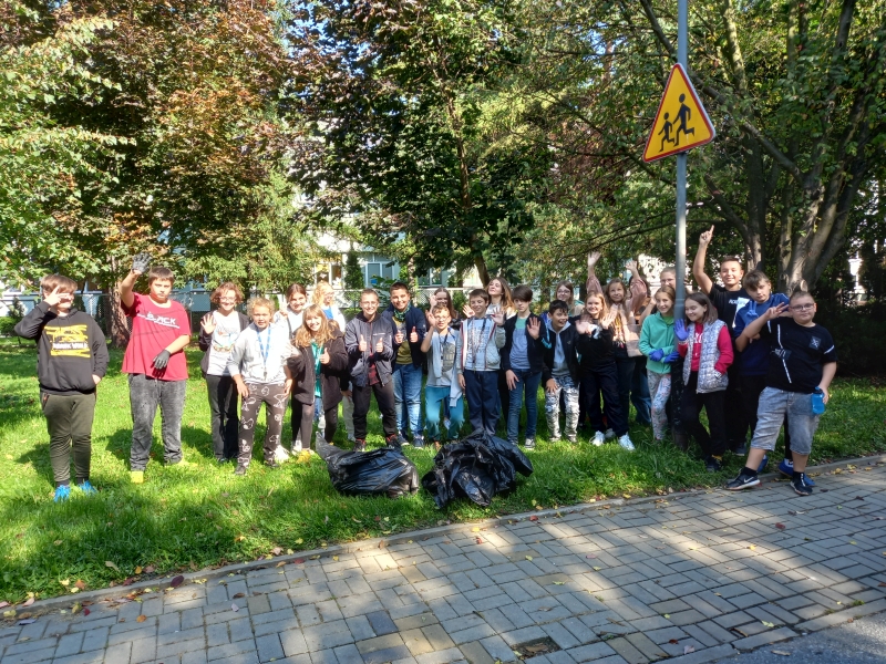 Uczniowie klasy 7a uczestniczyli w akcji „Sprzątanie świata”, czyli aktywnej lekcji poszanowania środowiska. Wszyscy uczniowie chętnie i z dużym zaangażowaniem selektywnie zbierali śmieci. W końcu każdy z uczniów doskonale rozumie, że odpowiadajmy za losy nie tylko najbliższego otoczenia, ale pośrednio także całej Planety.