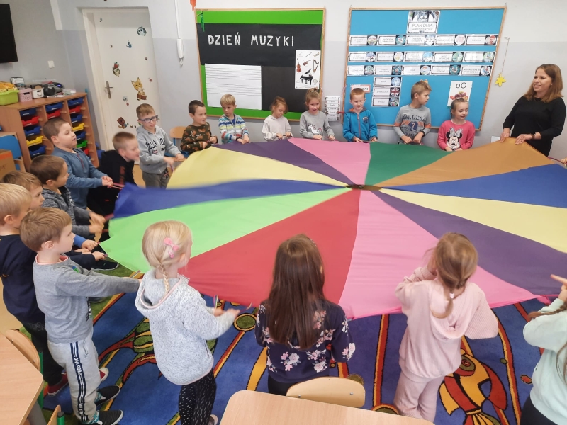 Międzynarodowy Dzień Muzyki to święto, które zainicjował Yehudi Menuhina w 1975 roku. Od tamtej pory co roku 1 października w salach koncertowych na całym świecie rozbrzmiewają wyjątkowe dzieła muzyczne. W tym roku również przedszkolaki z 6 grupy świętowały ten dzień. Podczas zajęć, dzieci rozmawiały o sposobie zapisywania nut na pięciolinii oraz nazwach dźwięków gamy C- dur. Poznały wybrane instrumenty symfoniczne, rozwiązywały zagadki słuchowe oraz ilustrowały muzykę ruchem, rozpoznając tempo i wysokość dźwięków. Nie zabrakło też śpiewu, tańca, gry na instrumentach perkusyjnych oraz dzwonkach diatonicznych na tubach. Kto wie, może ktoś z tej grupy zagra kiedyś na deskach filharmonii?