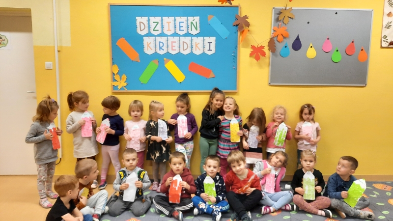 W kalendarzu świąt nietypowych pod datą 22 listopada znalazło się miejsce dla Dnia Kredki. Wbrew pozorom to święto dla wszystkich, nie tylko najmłodszych. To oczywiste, że dzieci częściej używają kredek niż dorośli. Na tak wczesnym etapie życia są one niezbędnym narzędziem do dobrej zabawy, ale i poznawania świata kolorów, kształtów i rozwijania wyobraźni. Obchodom Dnia Kredki w grupie Biedronek i Pszczółek towarzyszyło dużo radości i zabawy.