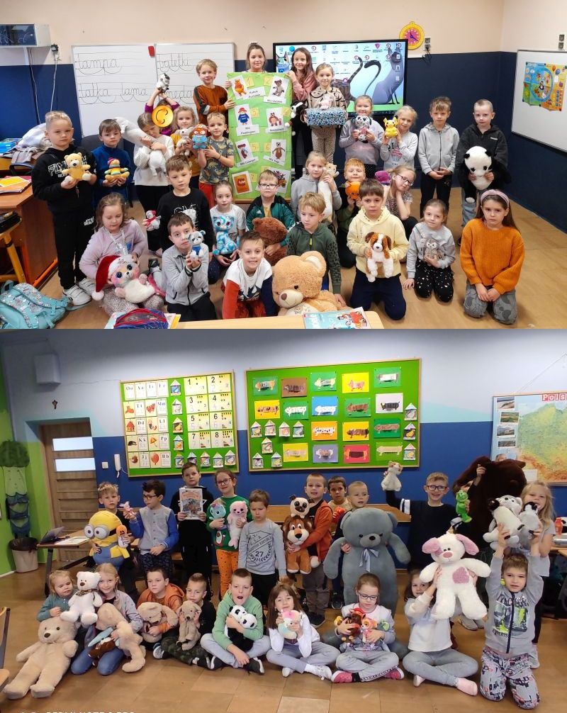 Z okazji Dnia Pluszowego Misia klub czytelnika zorganizował głosowanie pod hasłem „Mój ulubiony miś”. Dziewczynki z 3c, Gabrysia i dwie Martynki, zebrały głosy od wszystkich dzieci z klas 1-3. Wśród pierwszaków wygrał Miś Paddington. Miś Czarny Nosek to ulubieniec klas drugich. Natomiast Kubuś Puchatek zebrał najwięcej głosów od czytelników z klas trzecich. Miła niespodzianka spotkała naszych najmłodszych uczniów – chłopcy z klasy 3c czytali książki, których bohaterami są misie. Kacper był w 1a, Hubert w 1b, a Maksymilian w 1c. Dziękujemy!