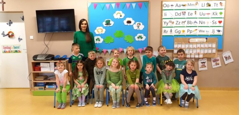 ST. PATRICK’S DAY – DZIEŃ ŚWIĘTEGO PATRYKA W środę 17 marca w naszym przedszkolu obchodziliśmy Dzień Świętego Patryka. Podczas zajęć „Motylki” poznały historię tego święta. Dziewczynki ozdabiały trójlistną koniczynę, która jest uważana za jeden z symboli Irlandii. Chłopcy dekorowali flagę tego państwa. Ubrane na zielono przedszkolaki świetnie bawiły się przy dźwiękach irlandzkiej muzyki. Rozbawieni i … Czytaj dalej ST. PATRICK’S DAY – DZIEŃ ŚWIĘTEGO PATRYKA