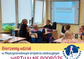 Międzynarodowy Projekt Edukacyjny ,,Wirtualne podróże” Temat drugiej lekcji projektu ,,Wirtualne podróże” dotyczył stolicy naszego kraju. Lekcja stała się okazją do odbycia wirtualnego spaceru po Warszawie oraz poznania historii tego miasta. Uczniowie szukali odpowiedzi na pytanie ,,Jaka jest stolica Polski?”. Na podstawie zdobytych informacji powstały ciekawe mapy myśli. Uczniowie na moment wcielili się też w rolę … Czytaj dalej Międzynarodowy Projekt Edukacyjny ,,Wirtualne podróże”