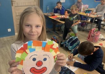 Kreatywni styliści fryzur z klasy 1c Uczniowie klasy 1c zamienili się pomysłowych kreatorów fryzur w czasie zajęć edukacji plastycznej. Pierwszaki starały się wymyślić najciekawszą fryzurę dla clowna, który występuje w najbardziej kolorowej i zaskakującej stylizacji. Pomysły fryzur okazały się bardzo ciekawe i zabawne.