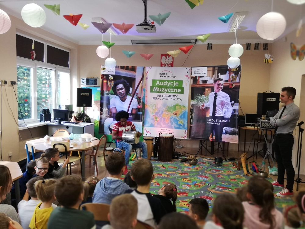 Uczniowie klas I poznają instrumenty perkusyjne świata