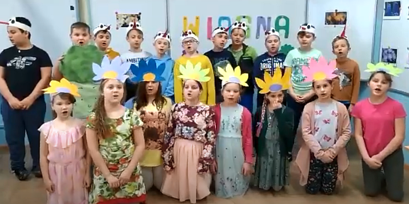 Powitanie wiosny piosenką w wykonaniu uczniów klasy 3c