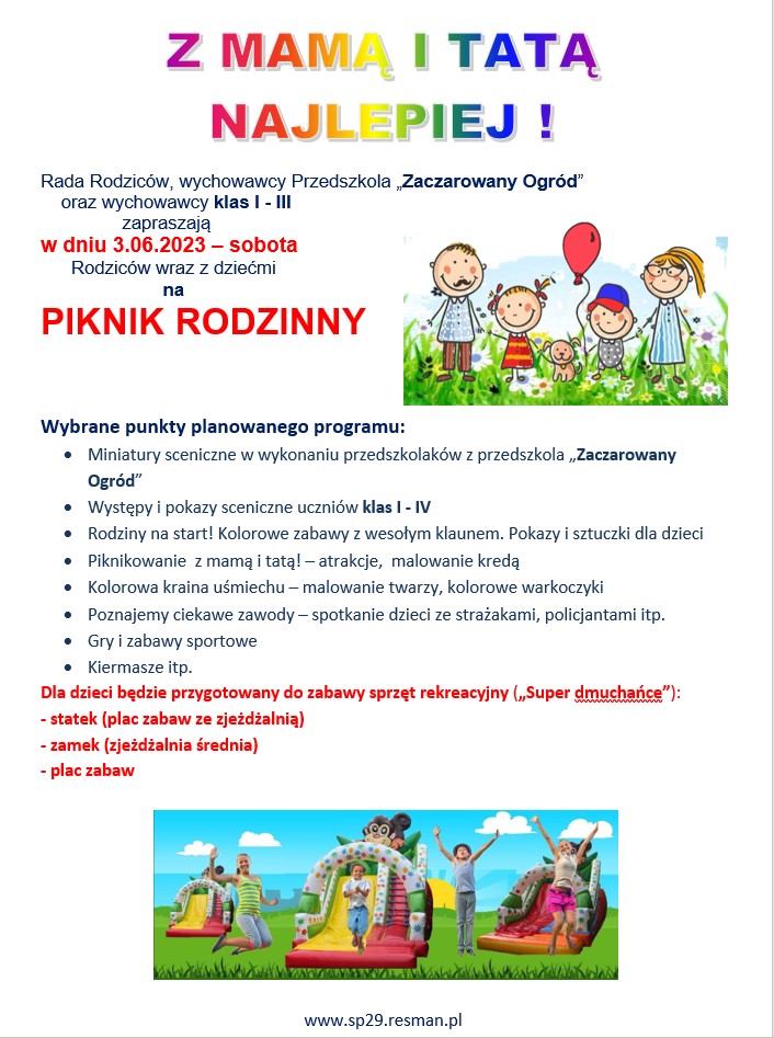 Zapraszamy na PIKNIK RODZINNY – 3.06.2023 sobota