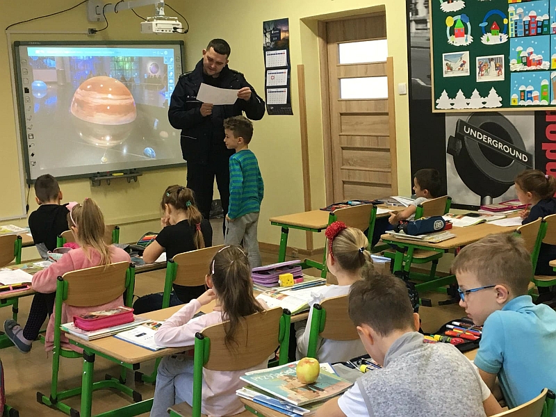 Ostatni dzień szkoły przed dłuższą przerwą to odpowiedni moment, by porozmawiać o bezpiecznych feriach. O zasadach, jakie powinny przestrzegać dzieci, opowiedział zaproszony do szkoły pan policjant. Była chwila na zadawanie pytań, na dzielenie się wątpliwościami. Teraz uczniowie mogą już rozpocząć ferie zimowe.