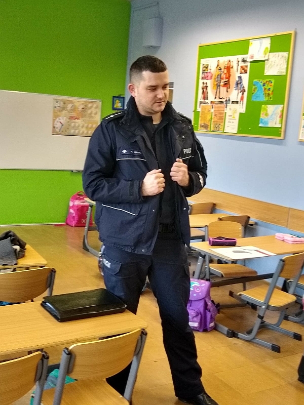 Bezpieczne ferie-spotkanie z panem policjantem