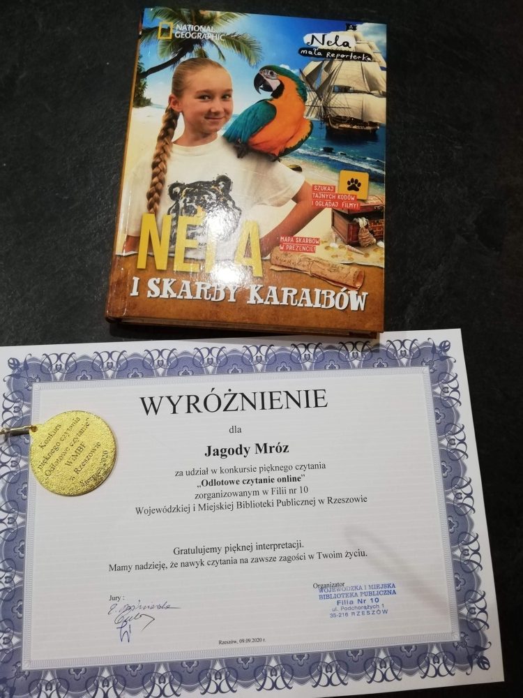 Uczennice klasy 3a wzięły udział w konkursie pięknego czytania online, zorganizowanym przez Filię nr 10 WiMBP w Rzeszowie. Inga i Jagódka, wielkie miłośniczki literatury i „pochłaniaczki” książek, zostały nagrodzone. Oprócz dyplomów otrzymały wspaniałe książki, które wzbogacą domowe biblioteczki.