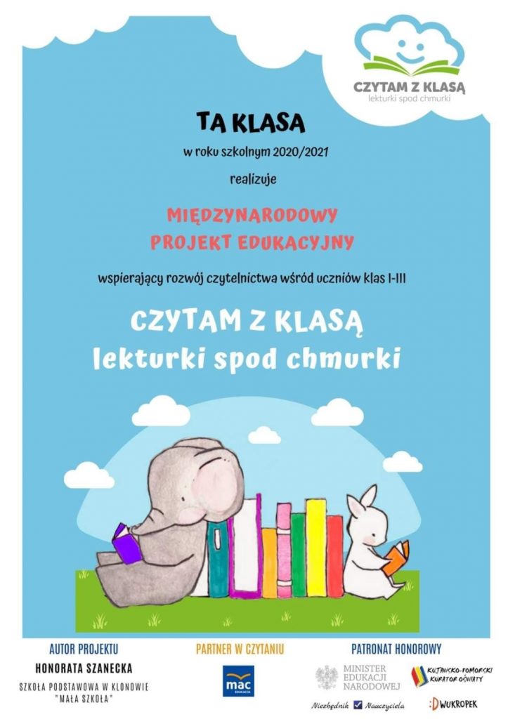 Klasa 3a bierze udział kolejny już raz w projekcie edukacyjnym „Czytam z klasą”. W tym roku jednak projekt poszerzył swój zasięg i stał się międzynarodowy. Tegorocznej edycji towarzyszy hasło „ECO”, co oznacza, że czytane przez trzecioklasistów teksty będą związane z edukacją przyrodniczą.