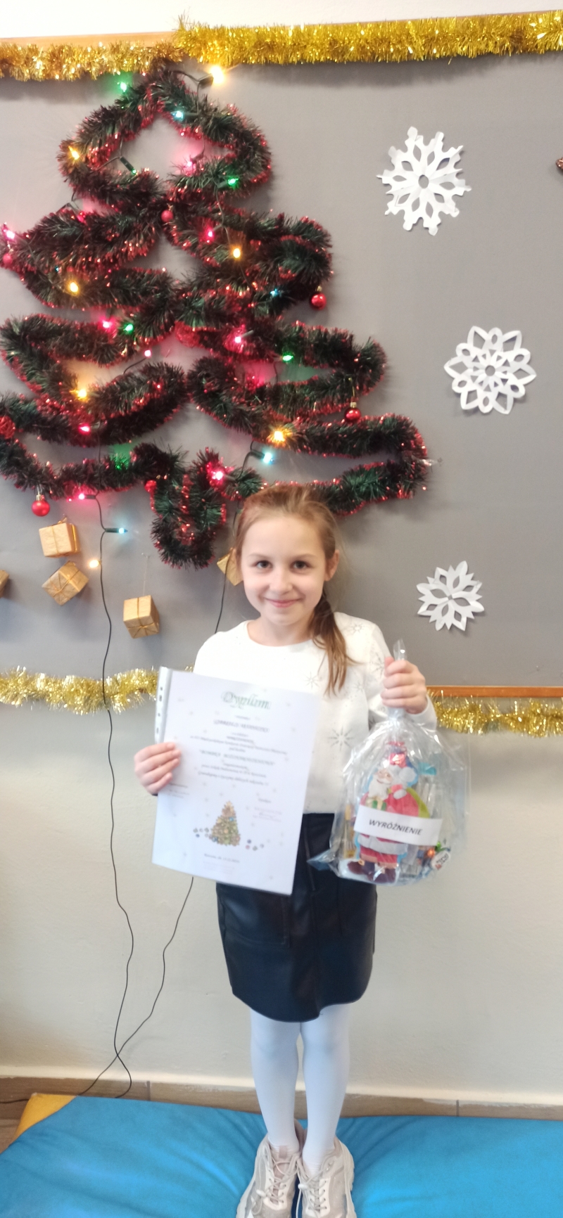 Miło nam poinformować, że uczennica klasy 3C Gabriela Rudnicka zdobyła wyróżnienie w XII Międzyszkolnym Konkursie Dziecięcej Twórczości Plastycznej „Bombka Bożonarodzeniowa” organizowanym przez Szkołę Podstawową Nr 28 w Rzeszowie. Gabrysia wykonała na konkurs piękną, błyszczącą bombkę przypominającą reniferka. Serdecznie gratulujemy i życzymy dalszych sukcesów!