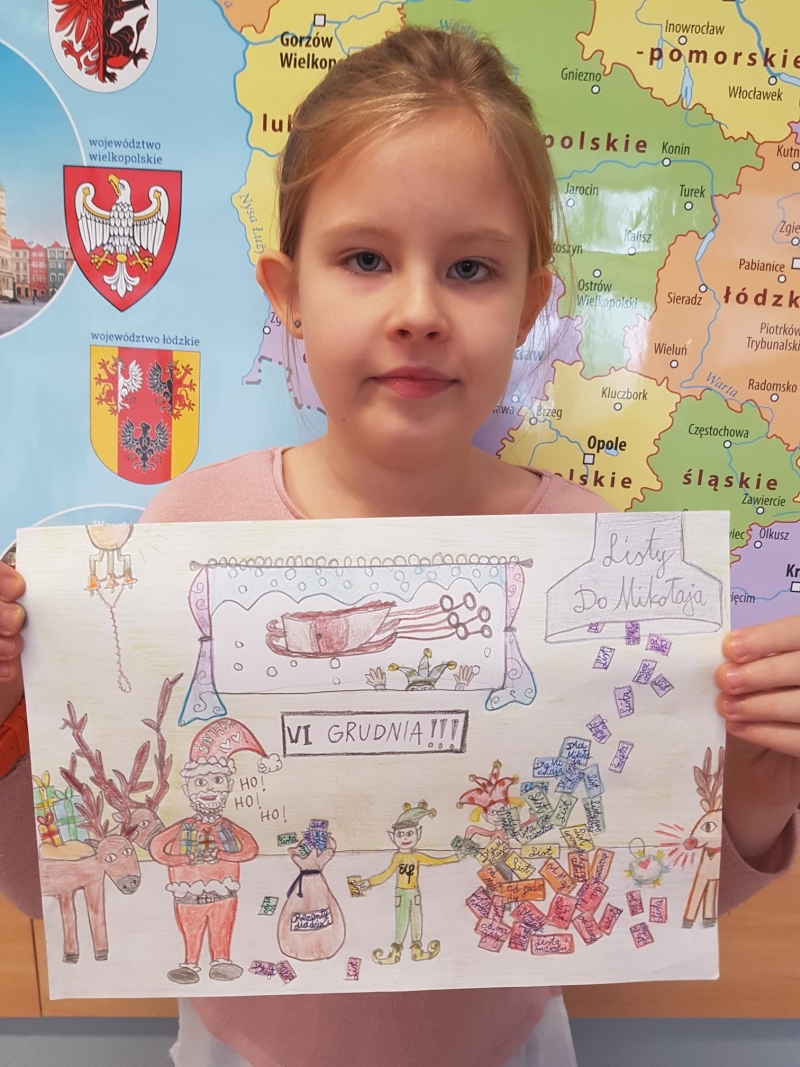 Milenka Koryl z klasy 3 c zdobyła III NAGRODĘ w VII edycji konkursu literacko-plastycznego online „Mikołajki w świecie bajki”, zorganizowanego przez FILIĘ NR 4 Wojewódzkiej i Miejskiej Biblioteki Publicznej w Rzeszowie.