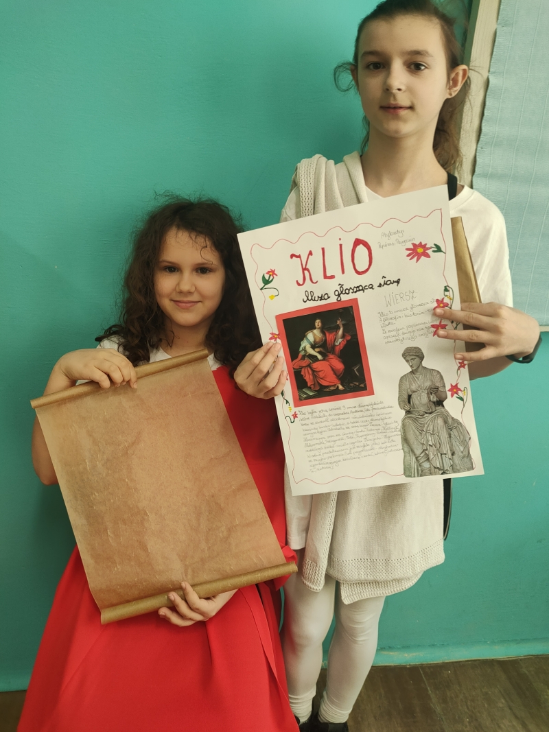 W marcu, podczas zajęć języka polskiego, uczniowie klas czwartych poznawali pojęcia związane z liryką. Urozmaiceniem zajęć była praca w grupach, podczas której uczniowie wykonywali plakaty poświęcone greckim muzom. Uczennice klasy 4a wcieliły się w role poznanych bohaterek mitologicznego świata. Zajęcia były ciekawą formą na wprowadzenie elementów mitologii greckiej.