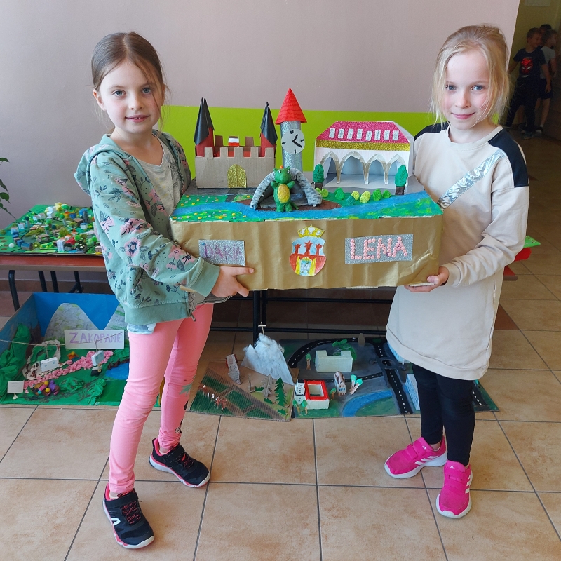 Uczniowie klasy 2b chętnie pracowali metodą projektu. Poznawali legendy polskich miast na podstawie lektury Barbary Tylickiej „O krakowskich psach i kleparskich kotach”. Najwięcej uwagi poświęcili dawnym i współczesnej stolicy Polski – Warszawie oraz zimowej stolicy – Zakopanemu. Nie zabrakło również makiety naszego miasta Rzeszowa, które dzieci przedstawiły w bardzo szczegółowy sposób z lotu ptaka. Wykonane prace wymagały od uczniów organizacji, kreatywności, umiejętności pracy w zespole i porozumienia. Oglądali także filmy i prezentacje o poszczególnych miastach Polski. Pracując wspólnie w zespołach stworzyli makiety miast Polski, które można było podziwiać na szkolnym korytarzu.