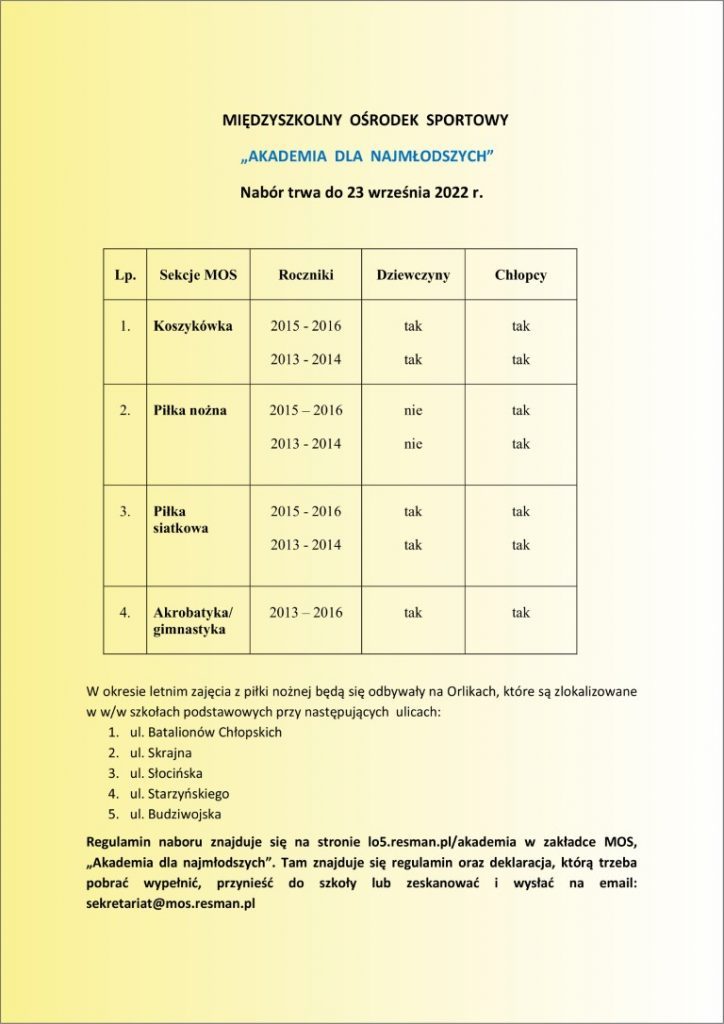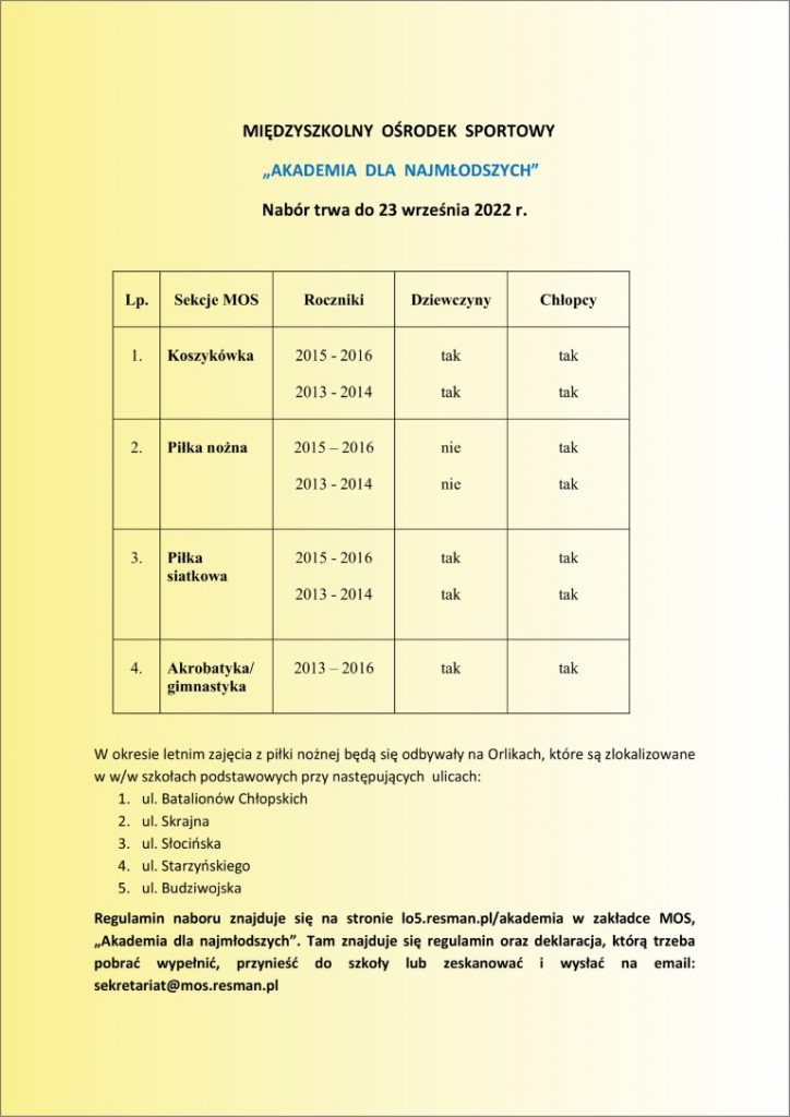Akademia dla Najmłodszych Międzyszkolnego Ośrodka Sportowego w Rzeszowie – nabór