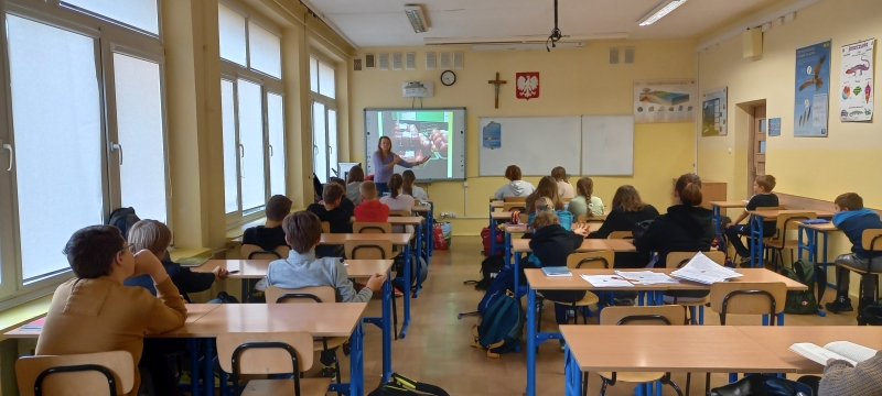 Ile śmieci rocznie wyrzuca każdy mieszkaniec Rzeszowa? Jak ograniczyć ilość wyrzucanych śmieci? Kiedy zabraknie mam surowców, jeżeli nie będziemy ich odzyskiwać? Odpowiedzi na te i inne ważne pytania poznali uczniowie klasy 6A, którzy na lekcji biologii uczestniczyli w zajęciach prowadzonych przez przedstawiciela Stowarzyszenia EKOSKOP w ramach akcji „Segreguję, bo warto… dla ochrony klimatu”. Dzięki warsztatom uczniowie dowiedzieli się, że segregowanie odpadów to nie tylko obowiązek i wyraz kultury ekologicznej, ale również droga do oszczędnej gospodarki, która sprzyja ograniczeniu zużywania surowców energetycznych czyli wspiera ochronę klimatu.