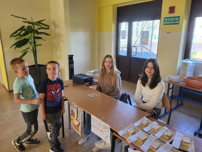 W dniach 12 – 13 października w naszej szkole obchodziliśmy Dzień papieski pod hasłem „Blask prawdy”. W tych dniach w czasie katechezy dzieci poznawały życie i nauczanie św. Jana Pawła II. Szkolne Koło Caritas prowadziło sprzedaż kremówki papieskiej. Dochód ze sprzedaży w wyskości 436 zł wpłaciliśmy na konto Fundacji Dzieło Nowego Tysiąclecia, która wypłaca stypendia zdolnej młodzieży z ubogich rodzin.