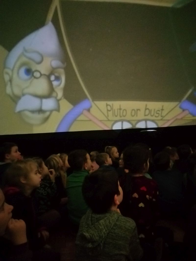 Podczas pokazu w mobilnym planetarium przedszkolaki uczestniczyły w niezwykłej podróży po kosmosie. Poznały sekrety naszego układu słonecznego, dowiedziały się jakie planety są wokół nas, z czego się składają.