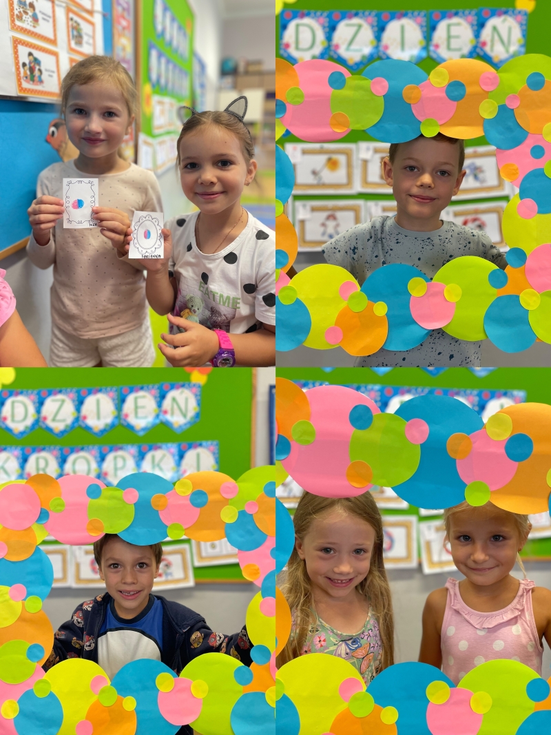 „Międzynarodowy Dzień Kropki” obchodzony jest na całym świecie 15 września. Jest to święto, które ma na celu pobudzanie kreatywności, pomysłowości, talentu i odwagi w pokonywaniu trudności. Dzieci i wychowawczynie tego dnia przyszli ubrani w grochy, kropki i groszki. Na zajęciach uważnie wysłuchaliśmy opowiadania, jak to zwyczajna kropka zmieniła świat małej dziewczynki o imieniu Vashti. Okazało się, że kropki towarzyszą nam w codziennym życiu. Są na skrzydełkach biedronki, w diamentowej koronie króla, a nawet zdobią kapelusz muchomora. Wspólnie bawiliśmy się z kropką, skakaliśmy po kropkach, oraz z kropek powstały piękne krajobrazy.