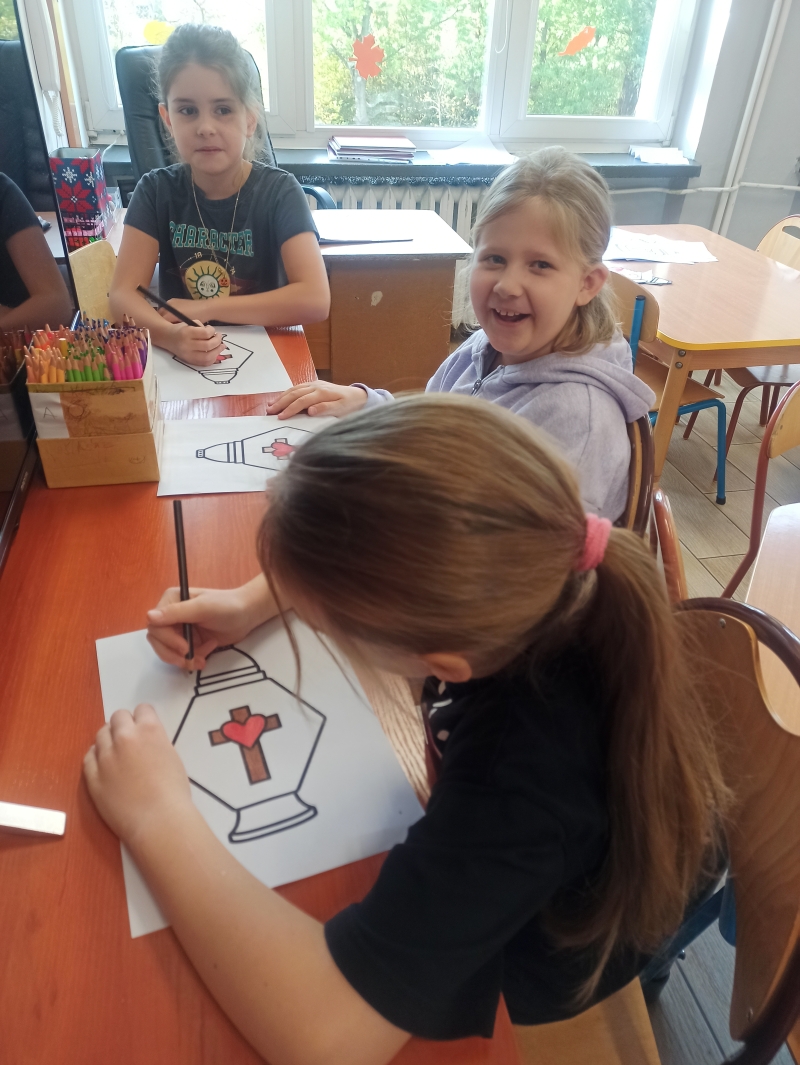 1 listopada obchodzimy Święto Wszystkich Świętych. To czas, kiedy odwiedzamy groby naszych bliskich, przynosimy kwiaty i palimy znicze. Dzieci w naszej świetlicy też przygotowały znicze – symbole pamięci, o tych których nie ma już wśród nas.