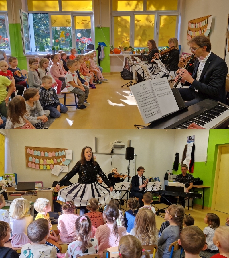 23 października w naszym przedszkolu odbyła się niezwykła lekcja muzyki. Niezwykła za sprawą niecodziennych gości, profesjonalnych muzyków z Mobilnej Filharmonii w Rzeszowie. Dzieci miały okazję uczestniczyć w koncercie muzycznym pt. „Ten dzieciak ma talent!”