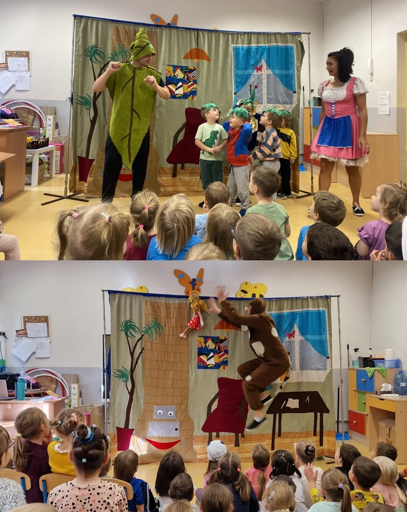 W czwartek (26.10.) gościliśmy w naszym przedszkolu teatr „Skrzat”. Nasze przedszkolaki z wielkim zainteresowaniem obejrzały przedstawienie pt. „Cztery mile za piec”.