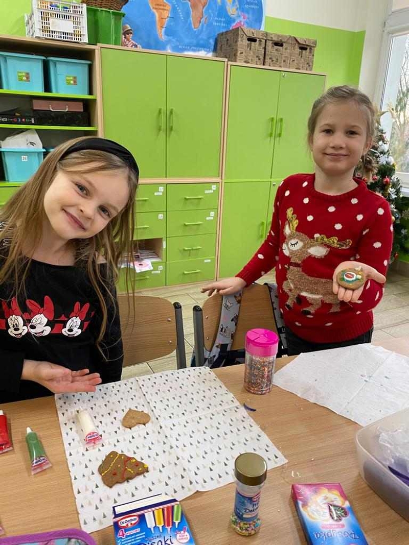 Nasi uczniowie to wspaniali cukiernicy. W fantazyjny sposób dekorowali pierniczki wykorzystując własną pomysłowość, a sala lekcyjna stała się cukiernią pełną zapachów i kolorów.
