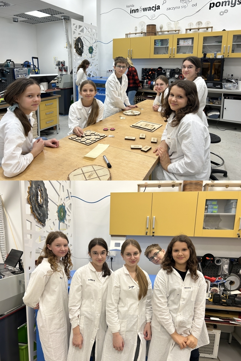 Klasa 6a nie ustaje w swoich naukowych eksploracjach. Tym razem aby zaspokoić głód wiedzy i potrzebę artystycznego wyrażenia siebie, uczniowie wybrali się na warsztaty FABLAB oraz do pracowni robotyki. Podczas zajęć mieli okazję zaprojektować i wykonać niepowtarzalne ozdoby świąteczne ze sklejki i drewna oraz zaprogramować roboty Lego w programie Lego Education SPIKE Prime.