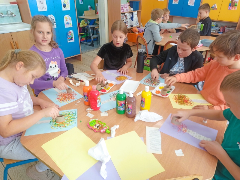 Obchodzony w naszej świetlicy w październiku Dzień Drzewa był doskonałą okazją aby przypomnieć sobie jak wielkie znaczenie drzewa mają dla naszej planety. Nie mogło zabraknąć również prac plastycznych o tej tematyce – dzieci przy pomocy farb wykonały piękne jesienne drzewa.