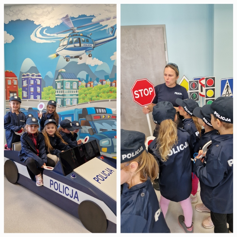 Dzieci z grup Motylki i Wróbelki pojechały na wycieczkę do Komisariatu nr 2 Komendy Miejskiej Policji w Rzeszowie. Pod opieką swoich pań oraz funkcjonariuszy Policji, zwiedzały budynek komisariatu, gdzie poznały najważniejsze miejsca pracy policjantów. Najwięcej emocji wzbudziła jednak wizyta w „Pokoju młodego policjanta”, w którym poprzez zabawę mogły poznać i nauczyć się zasad ruchu drogowego oraz zapoznać się z procedurami postępowania w sytuacji zagrożenia. Rozmowy z policjantami oraz możliwość wcielenia się w rolę małych funkcjonariuszy policji, przyniosły przedszkolakom wiele radości i niezapomnianych wrażeń.