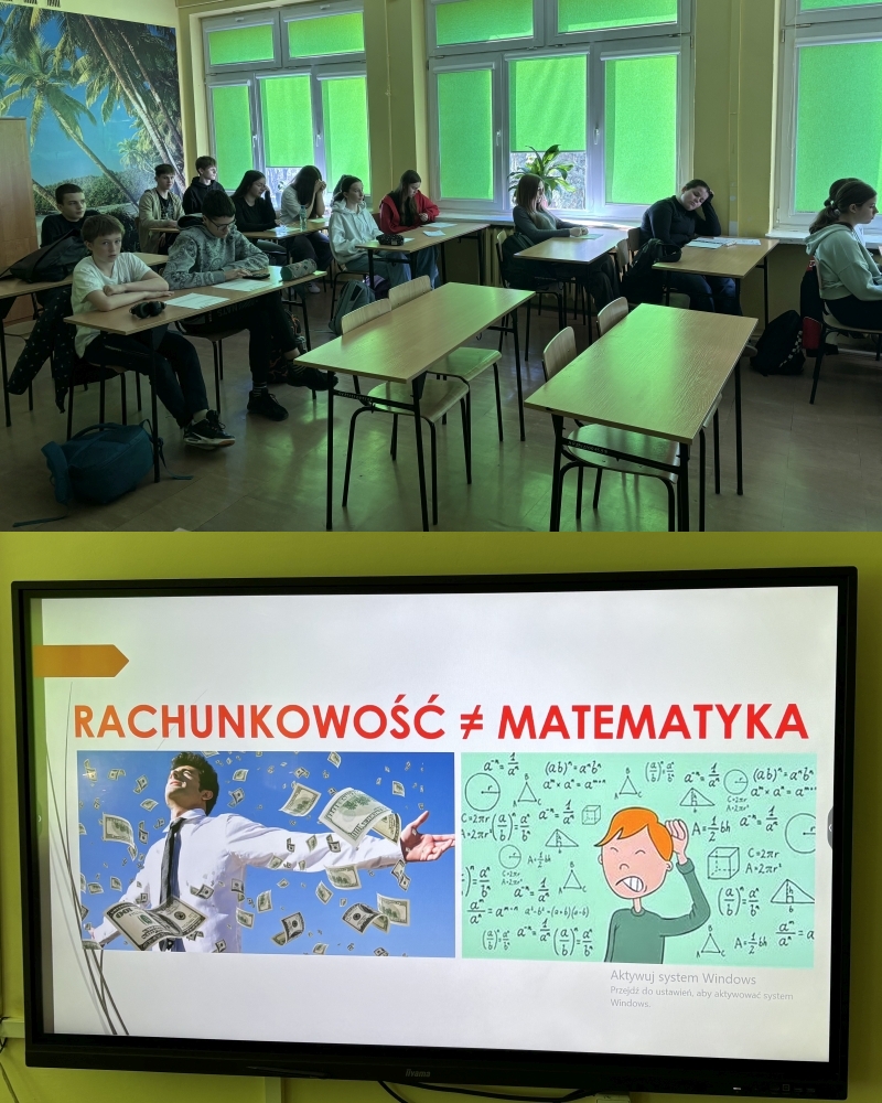 Odbyło się spotkanie uczniów klasy 8a z nauczycielami z Zespołu Szkół Ekonomicznych w Rzeszowie, które miało na celu zapoznanie uczniów z podstawami rachunkowości i możliwościami kontynuacji nauki w tej dziedzinie. Uczniowie mieli okazję zapoznać się z przykładowymi zadaniami rachunkowymi, w tym prostymi operacjami na dokumentach księgowych. Zajęcia miały na celu pokazanie, jak rachunkowość jest stosowana w codziennej pracy. Na zakończenie uczniowie zadawali pytania, dotyczące zarówno przyszłej nauki rachunkowości, jak i samego zawodu księgowego. Nauczyciele wyjaśnili, jakie umiejętności są kluczowe, by osiągnąć sukces w tej branży, i jakie cechy charakteru mogą pomóc w pracy. Spotkanie miało na celu zachęcenie uczniów do podjęcia nauki w kierunku rachunkowości oraz przedstawienie im, jak ważna jest ta dziedzina w funkcjonowaniu firm i organizacji. Uczniowie wykazali duże zainteresowanie tematem, a nauczyciele z Zespołu Szkół Ekonomicznych obiecali dalsze wsparcie w procesie edukacyjnym i doradztwie zawodowym.