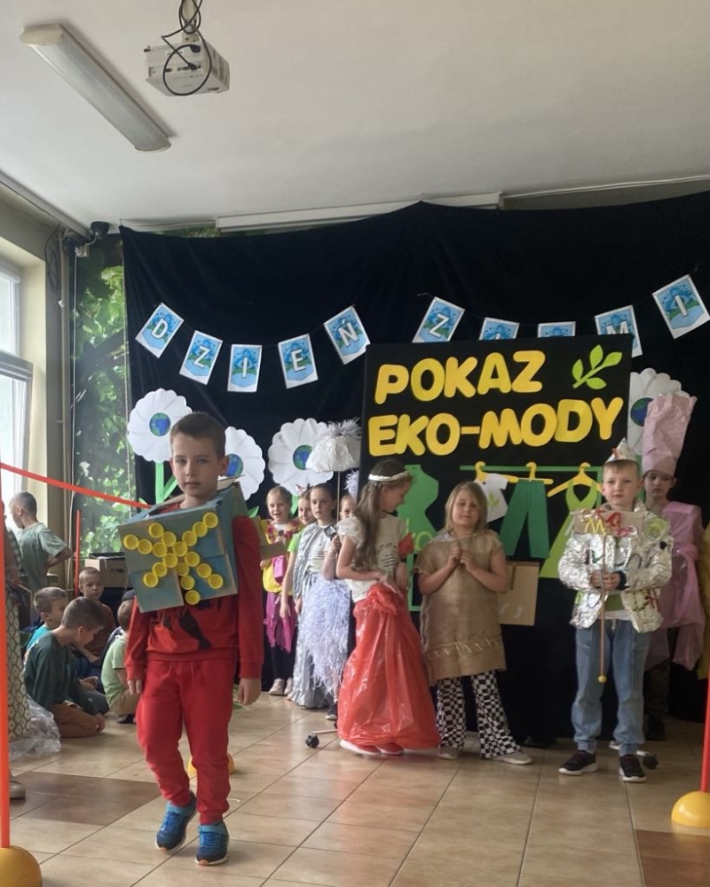25 kwietnia odbył się “Pokaz Eko – Mody”, który był częścią obchodów ,,Dnia Ziemi”. Uczniowie klas I – III wystąpili w zaprojektowanych i wykonanych strojach ekologicznych, z materiałów gotowych do ponownego wykorzystania tj. folia, plastik, papier, torebki, pudełka, gazety, itp. Wśród strojów ekologicznych można było zobaczyć: strój wieczorowy, balowy, sportowy, do pracy, do szkoły oraz kosmiczny. Wszyscy autorzy strojów ekologicznych zostali nagrodzeni licznymi brawami oraz medalami i nagrodami.