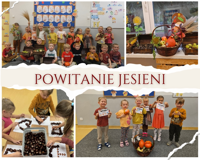 Przedszkolaki radośnie przywitały nadejście jesieni. Tego dnia w salach zagościły jesienne barwy, a wokół pojawiły się liście, dynie, kasztany i żołędzie, tworząc prawdziwie jesienny klimat.
