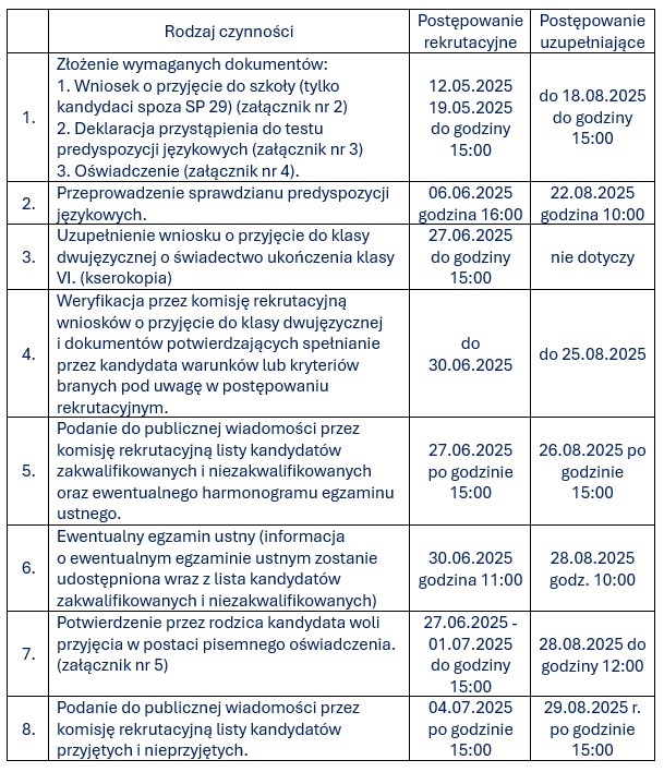 Regulamin przyjęć do klasy 7 dwujęzycznej